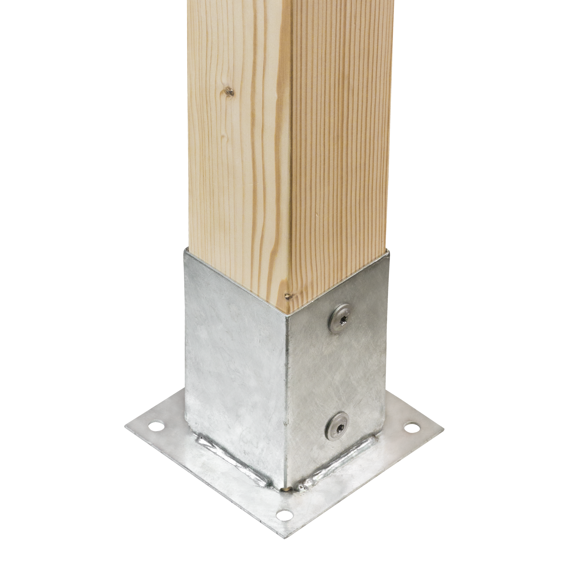 For optimal performance, ensure the base plate is fully embedded in concrete, allowing the galvanised steel to protect the timber post from moisture and potential rot.