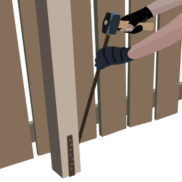 - Drive the first stake into the undamaged underground section of the post. Use a mallet or sledge with a wooden block to protect the finish if required.