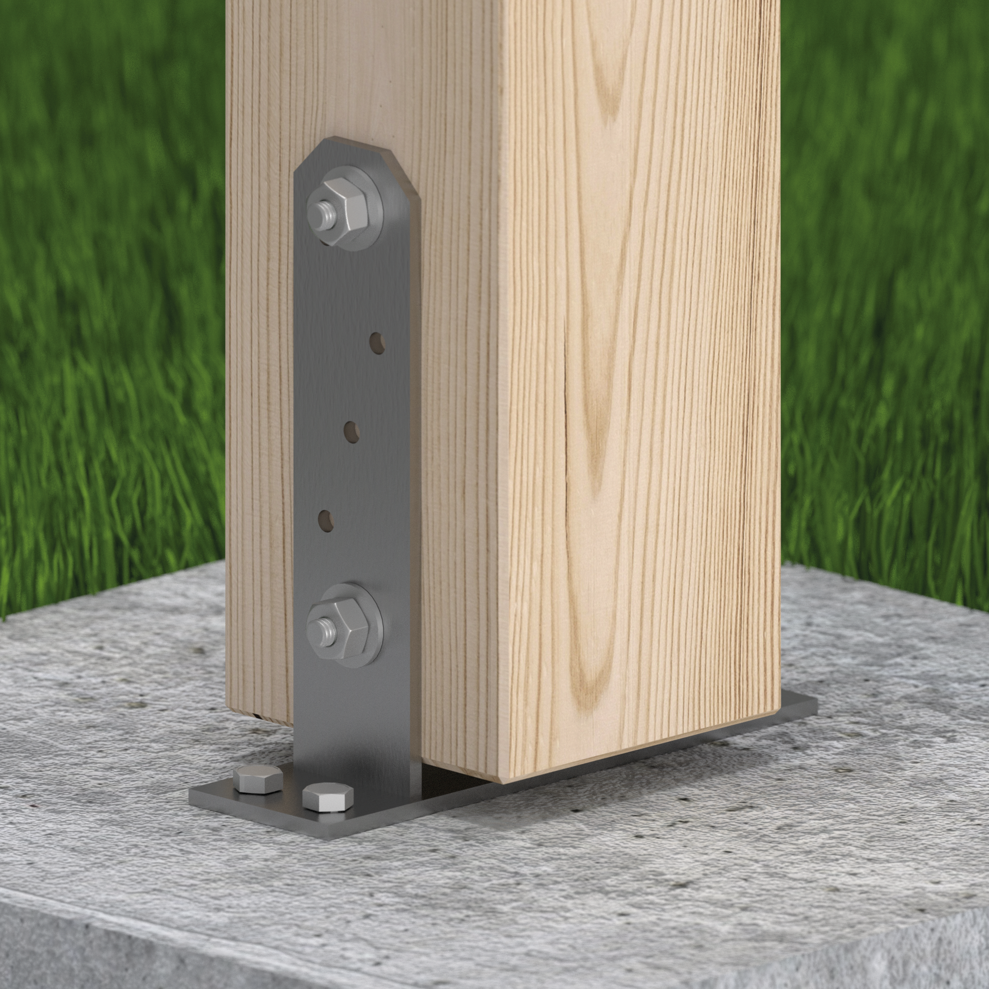 For best results, securely bolt the base plate to a concrete surface. This ensures stability while the galvanised steel protects your timber posts from moisture and decay.